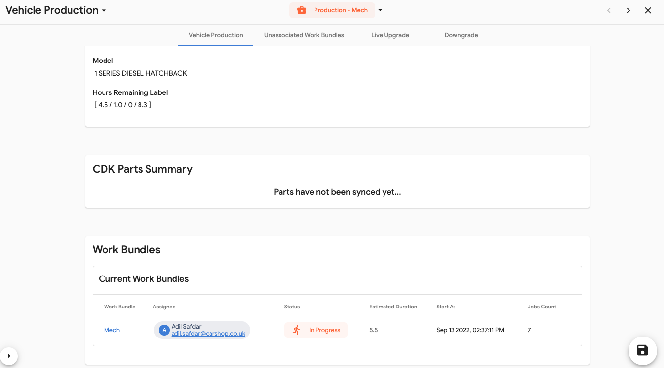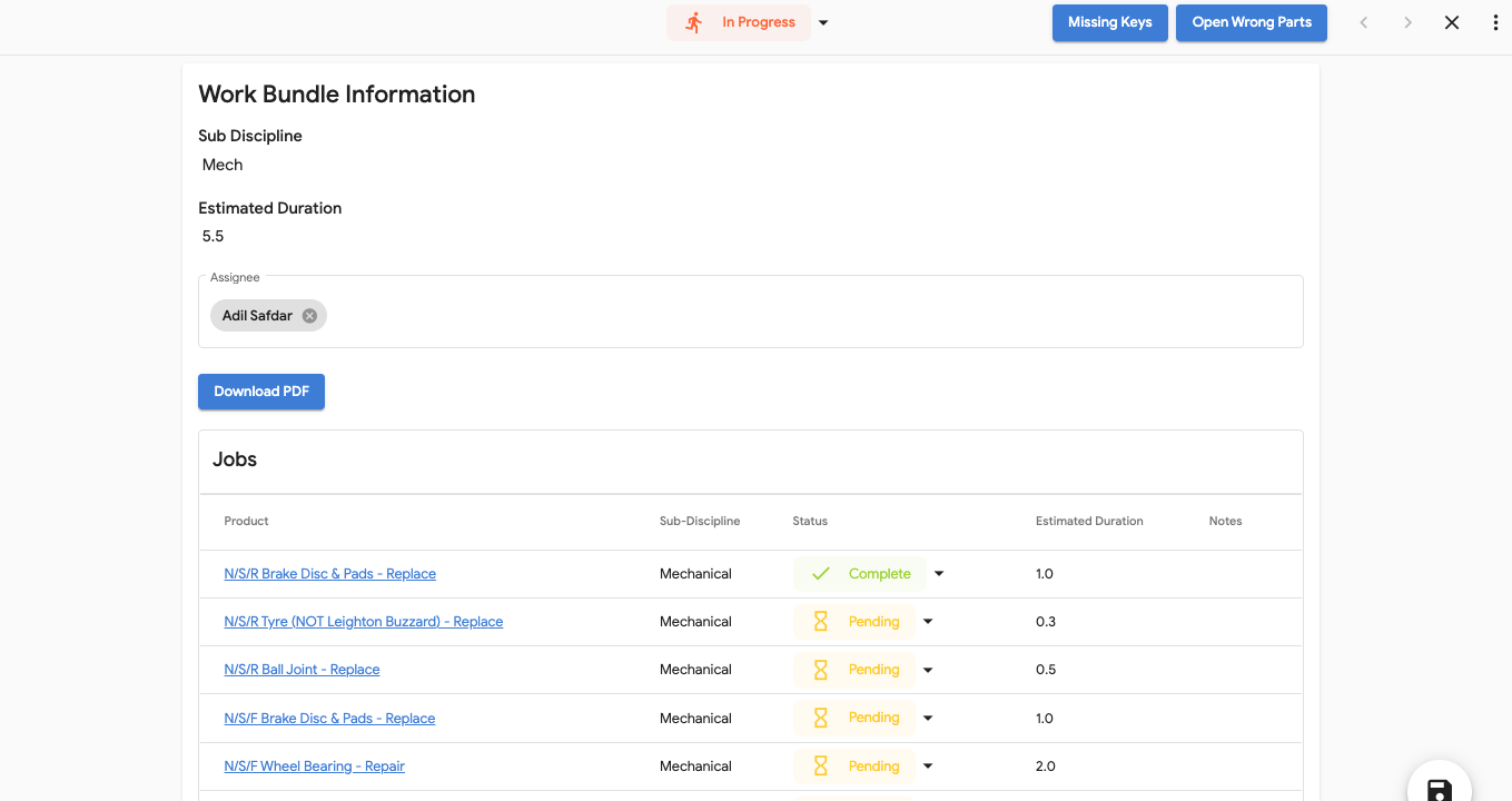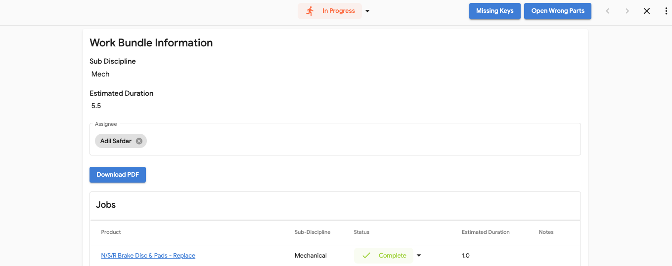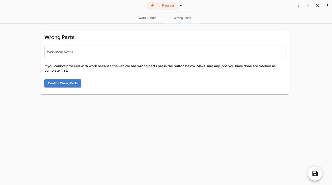 - Go Back to the Work Bundle Information Page and select 'Open Wrong Parts'