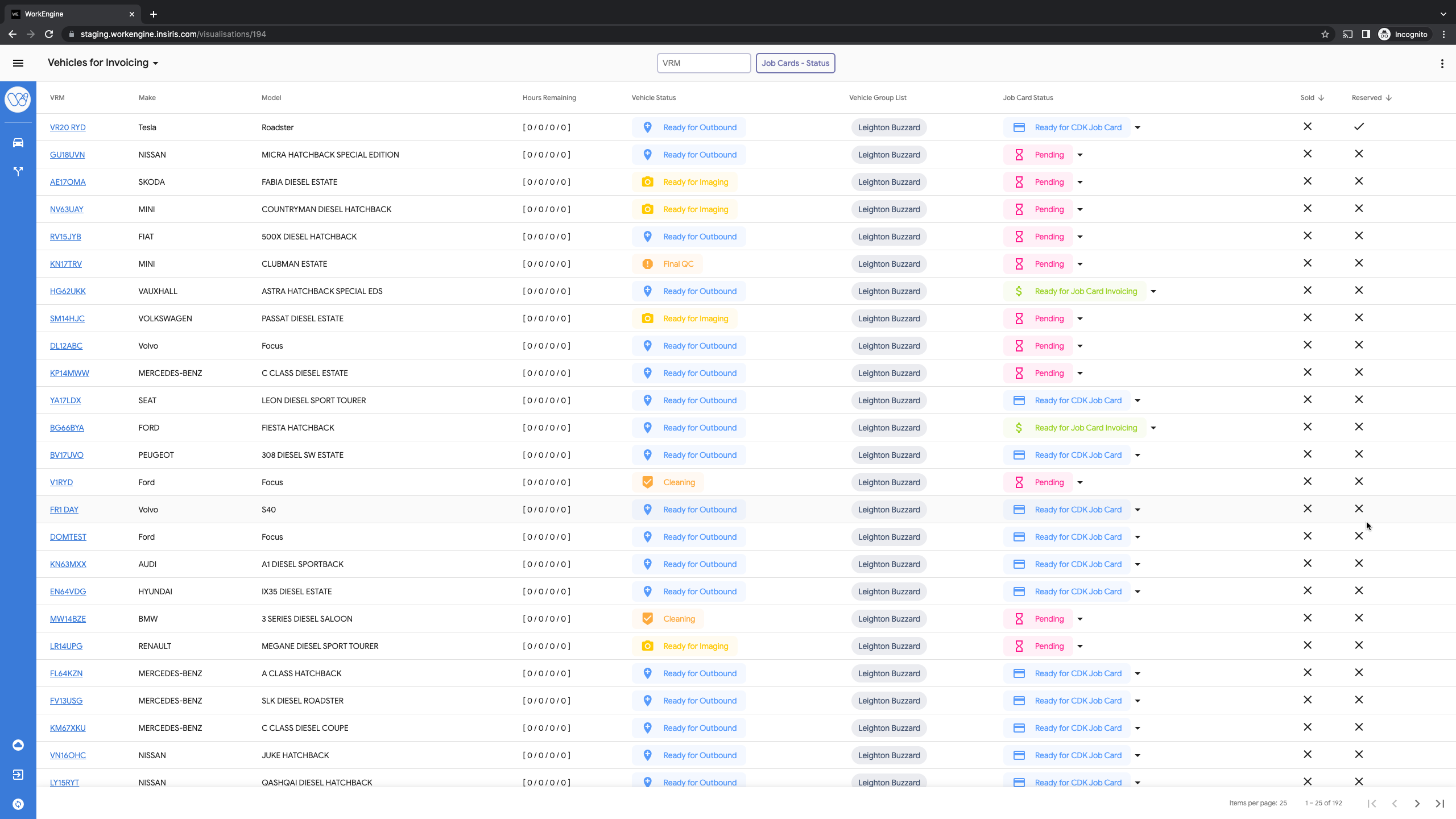 When production and QC are completed on the vehicle it will go into a status of ‘Ready for Outbound’ and at this point, the vehicle will be shown in Vehicles for Invoicing.