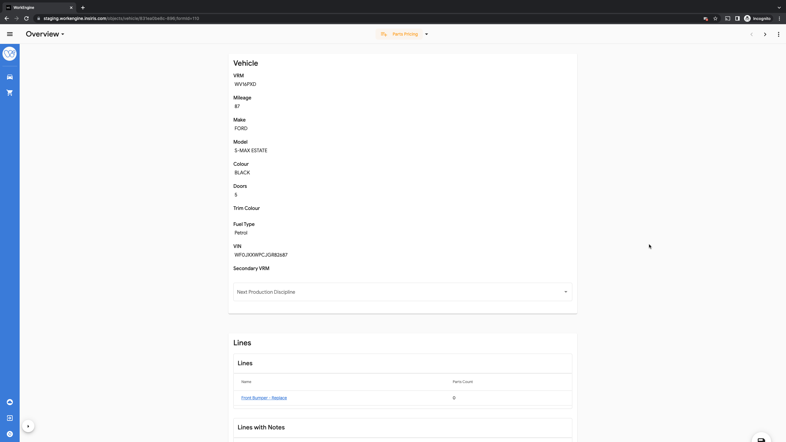 If any lines have been added to the vehicle at inspection that requires parts before the vehicle is priced the system will move the vehicle into Parts Pricing so that these can be added.