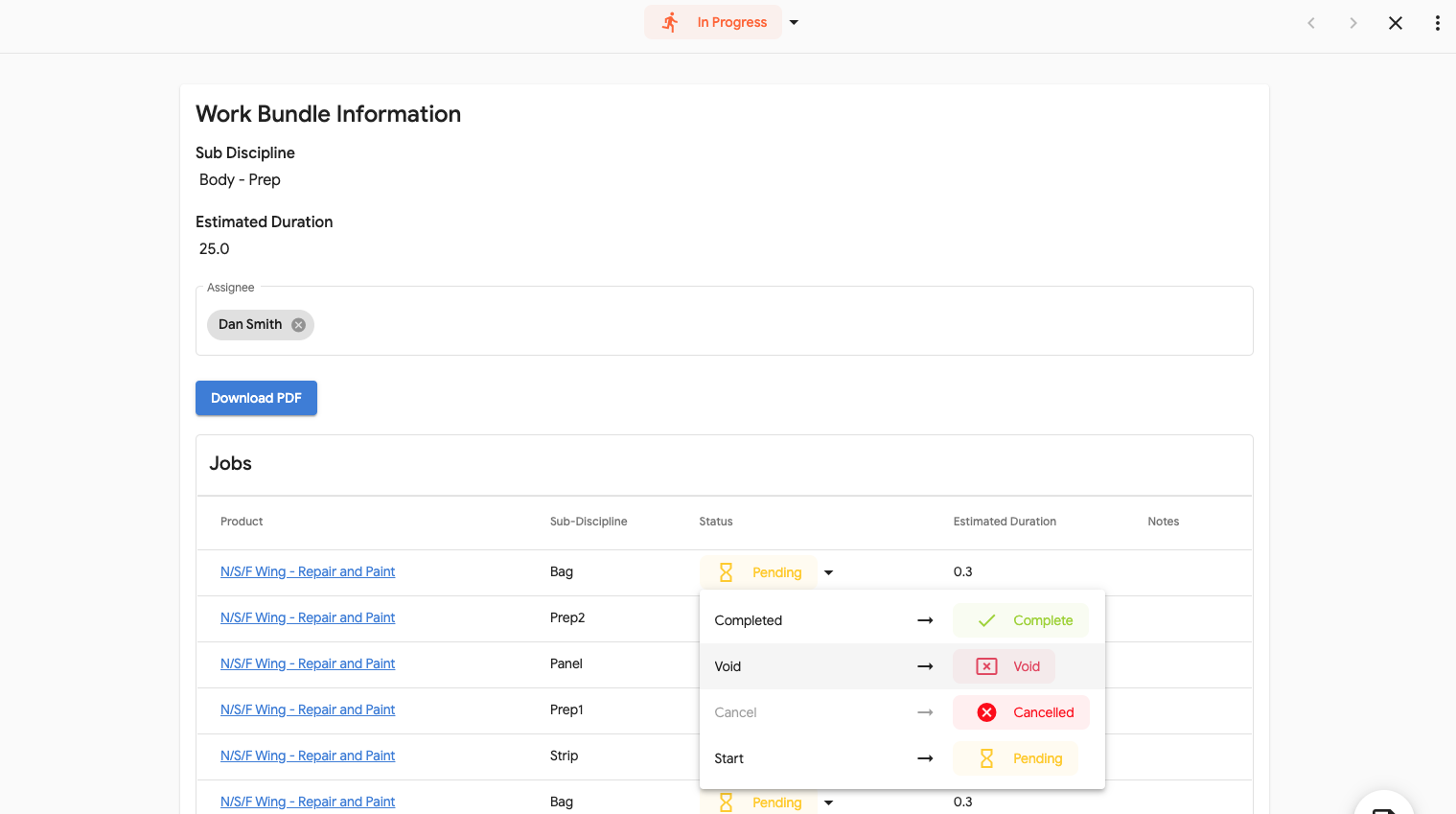 Please Note, If the work bundle is complete the jobs can not be voided. Please make sure that the work is correct before completing all jobs.