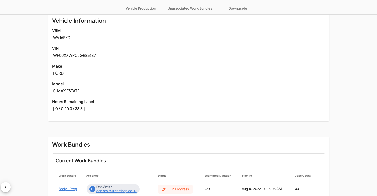 - In 'Vehicles in Production' search for the vehicle using the VRM