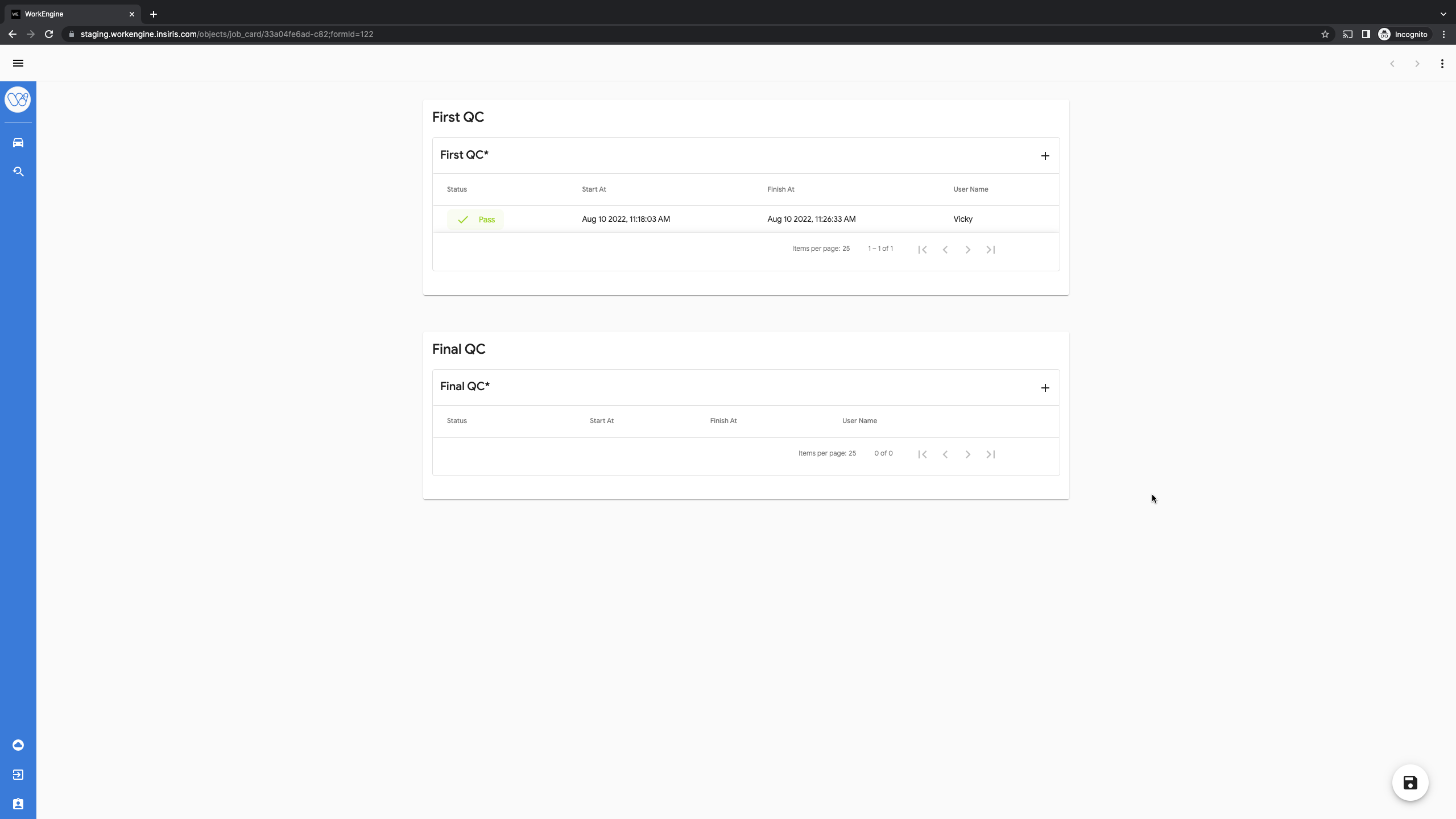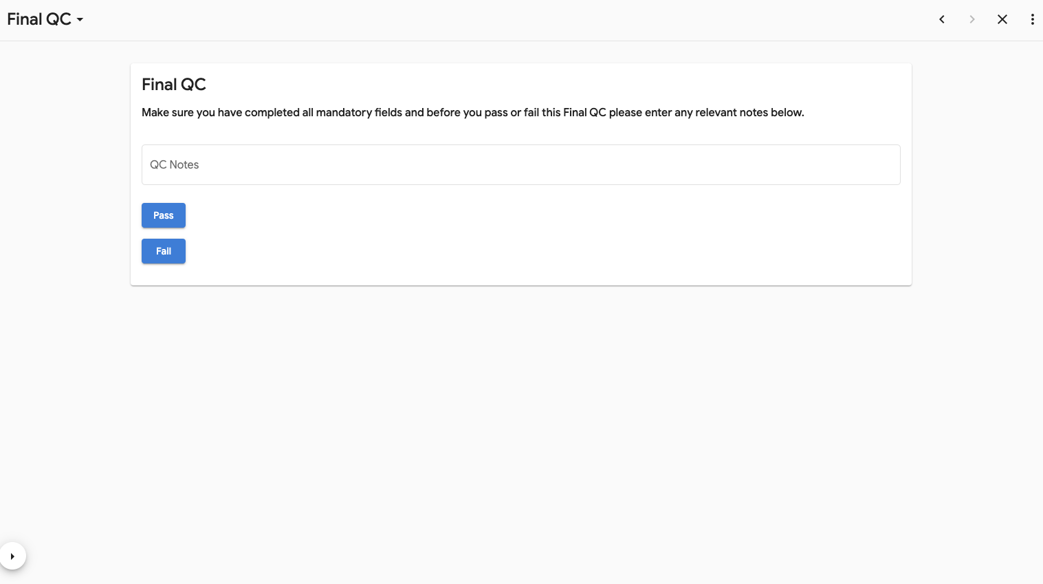 - Select the + on the right of the Final QC box