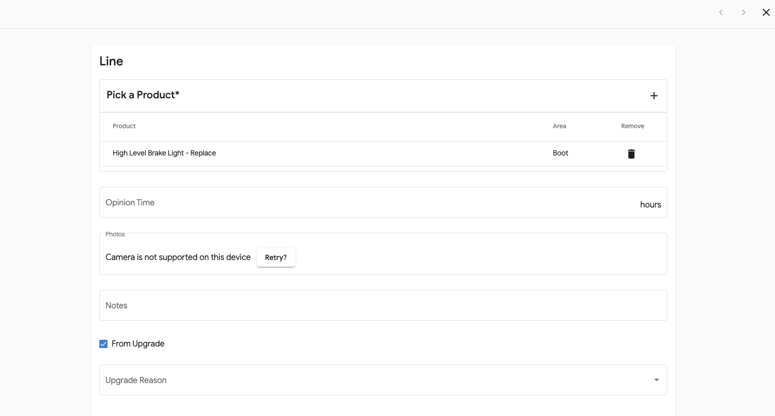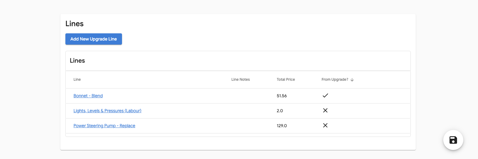 This will open the vehicle details and further down will be the Add New Upgrade Line